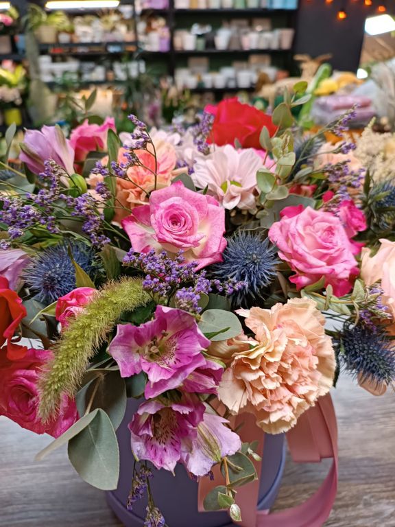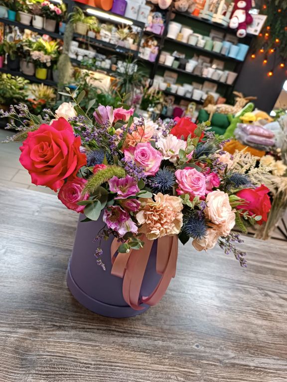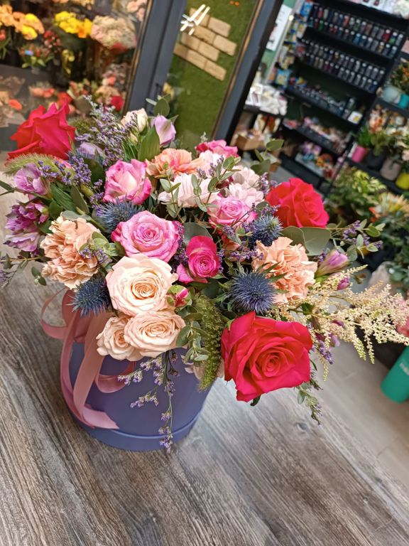 Композиция "Фуксия" 4 900 ₽ можно купить в кредит В корзину Купить в 1 клик В корзину Купить в 1 клик Описание Комментарии 0 Описание Воздушная миксовая композиция в шляпной коробке(XL) Комментарии 0 Добавить комментарий Поделиться